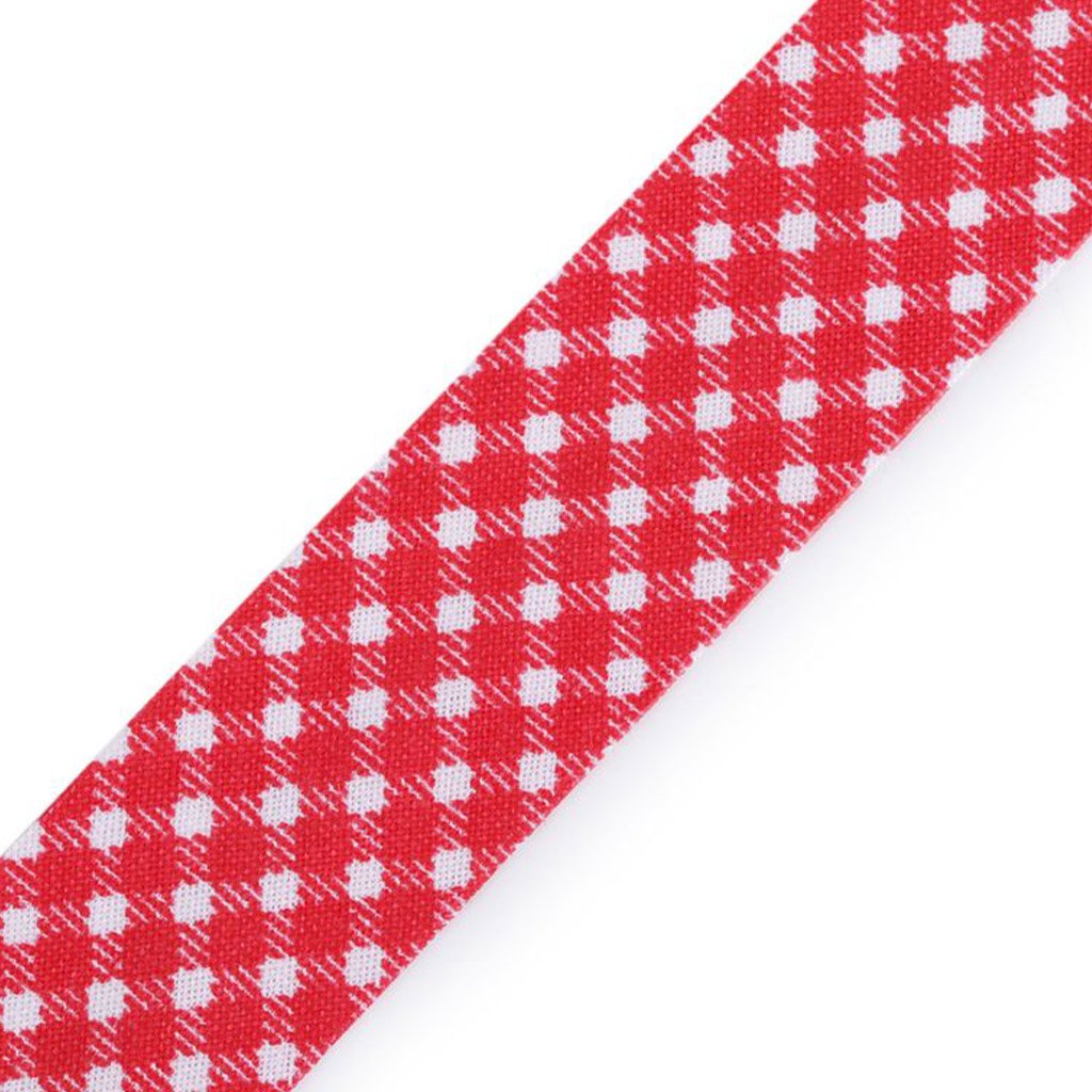 Šikmý proužek bavlněný 20 mm káro červený