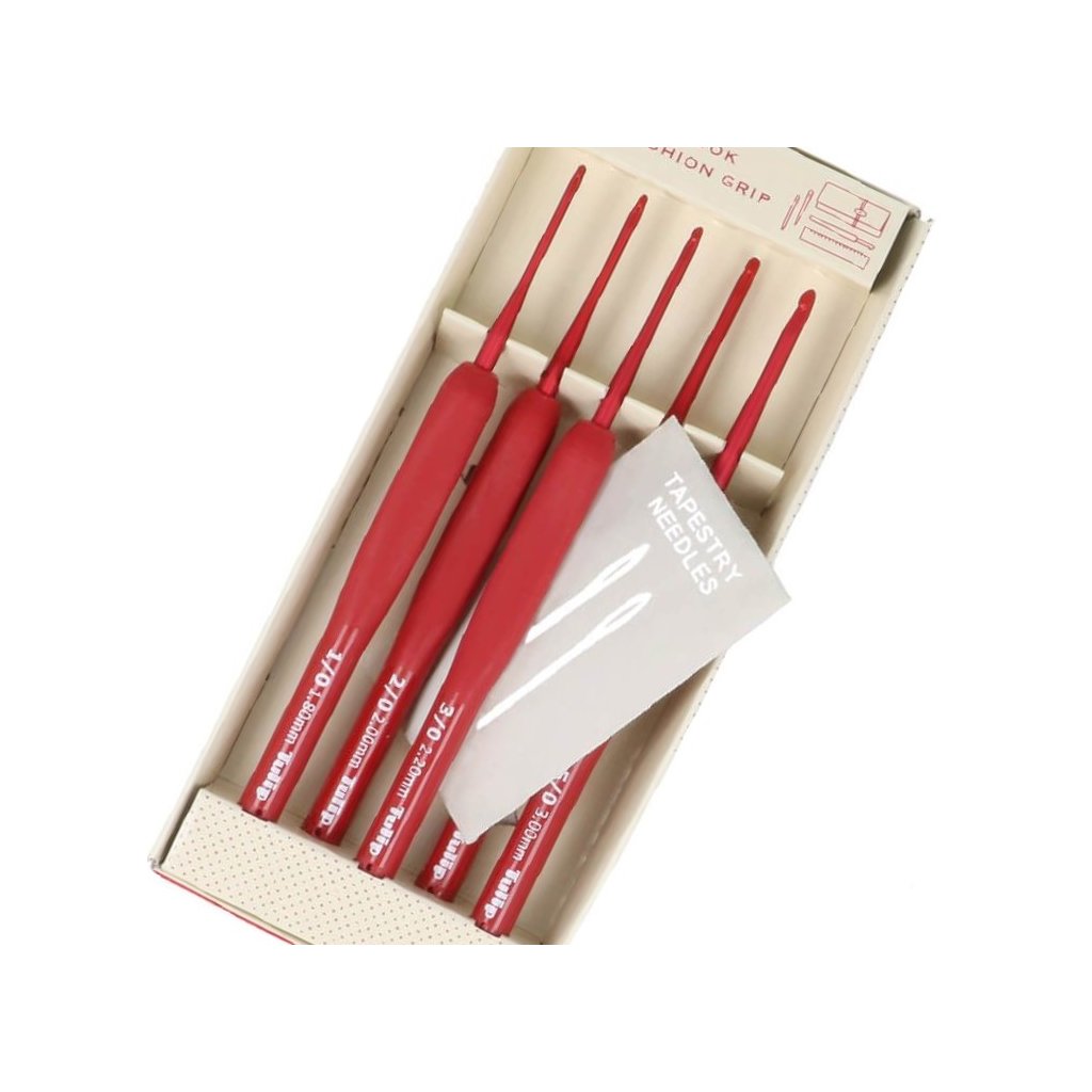 Tulip Etimo Red "soft grip" hooks have a soft silicone handle and smooth hook, the matt red tones do not reflect light and are gentle on the eyes, ensuring long hours of enjoyable crocheting.