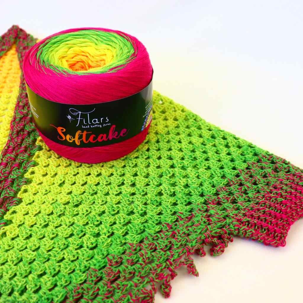 Příze Filars Soft Cake je 4 nitkové duhové klubíčko, ze kterého vytvoříte krásné vesty, svetry, ponča, šaty, sukně.