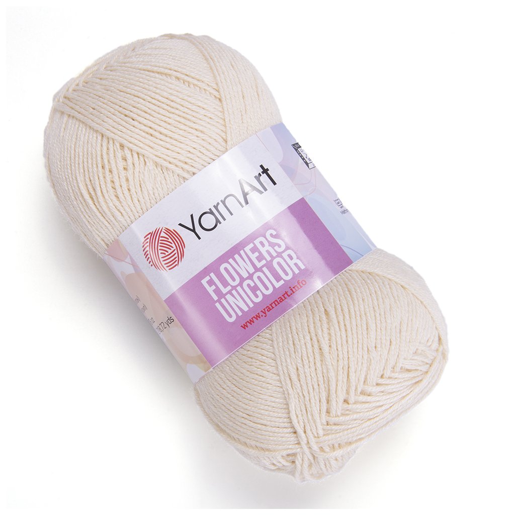 Jednobarevná příze Flowers Unicolor má stejné složení bavlny a polyakrylu jako příze Flowers, Flowers Vivid.