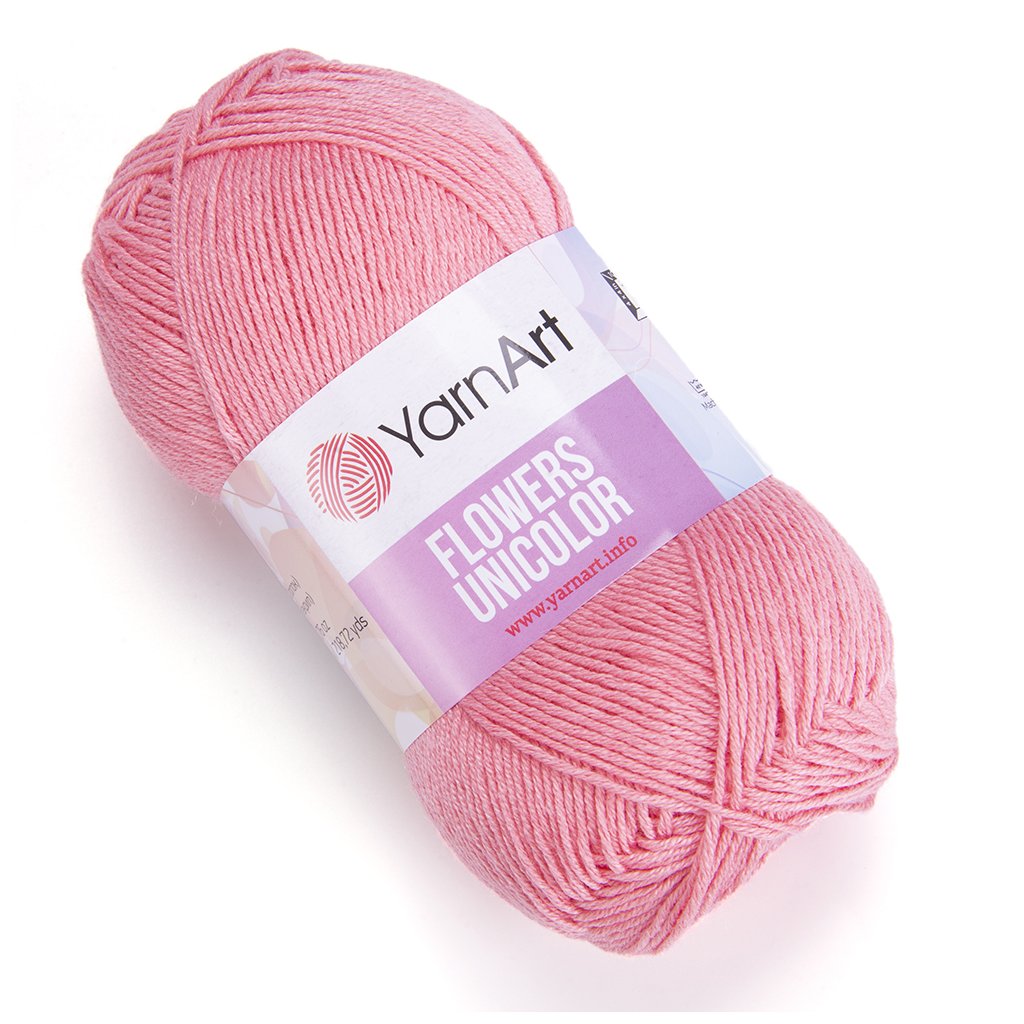 Jednobarevná příze Flowers Unicolor má stejné složení bavlny a polyakrylu jako příze Flowers, Flowers Vivid.