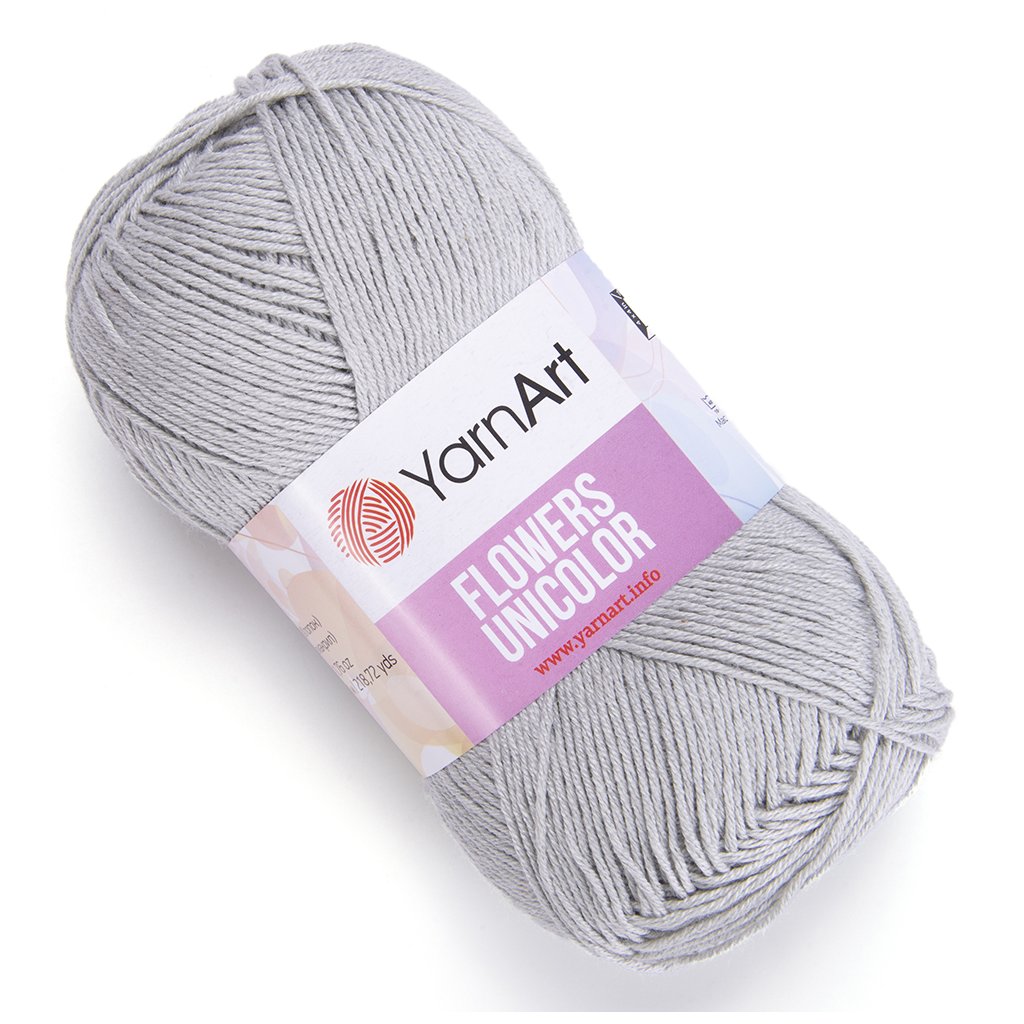 Jednobarevná příze Flowers Unicolor má stejné složení bavlny a polyakrylu jako příze Flowers, Flowers Vivid.