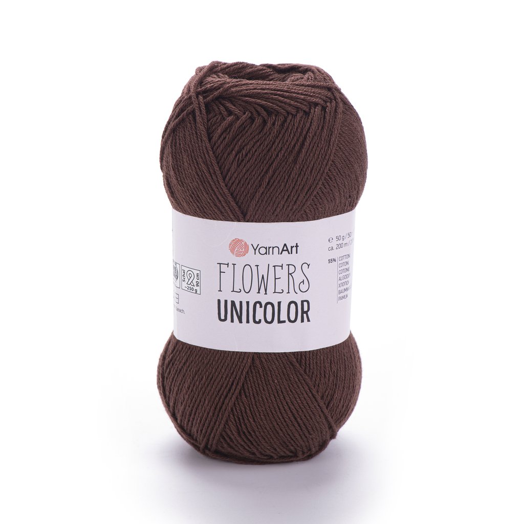 Jednobarevná příze Flowers Unicolor má stejné složení bavlny a polyakrylu jako příze Flowers, Flowers Vivid.