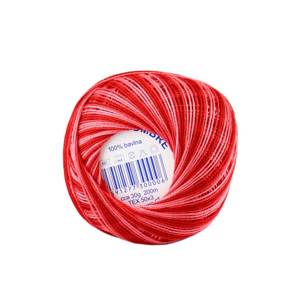 Háčkovací příze Sněhurka ombré 34382 červená.