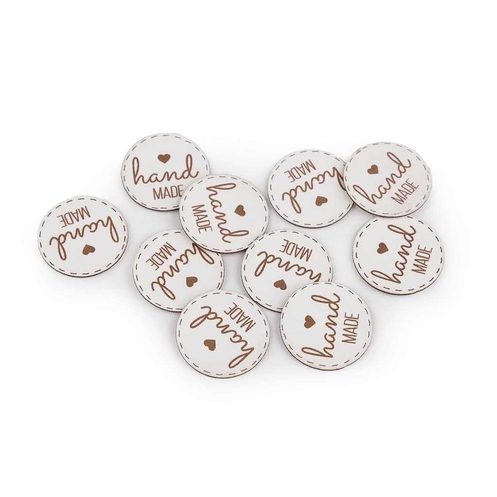 Papírová cedulka kulatá s nápisem Hand made, Ø 35 mm.