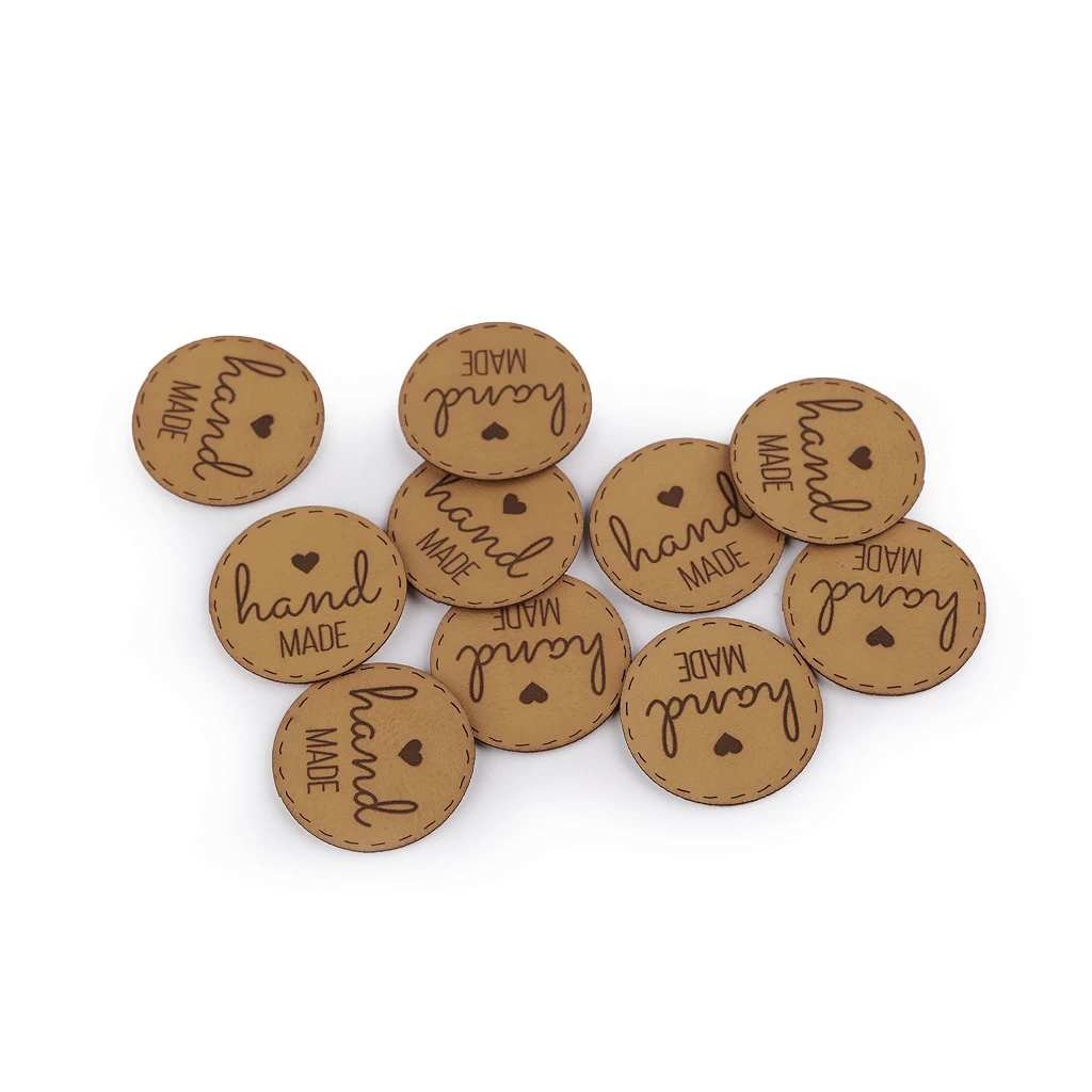 Papírová cedulka kulatá s nápisem Hand made, Ø 35 mm.
