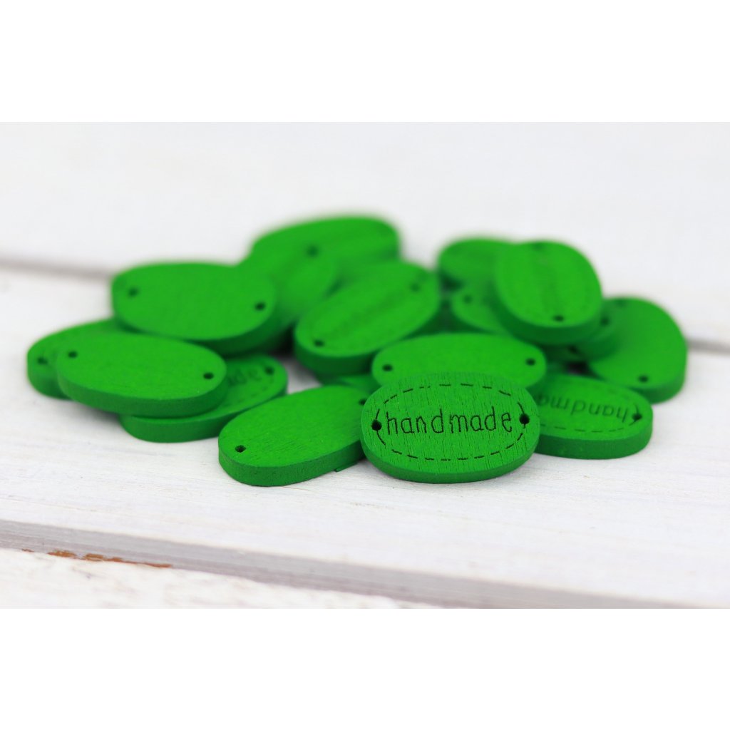 Dřevěný knoflík ve tvaru elipsy, zelený (28 x 8 mm).