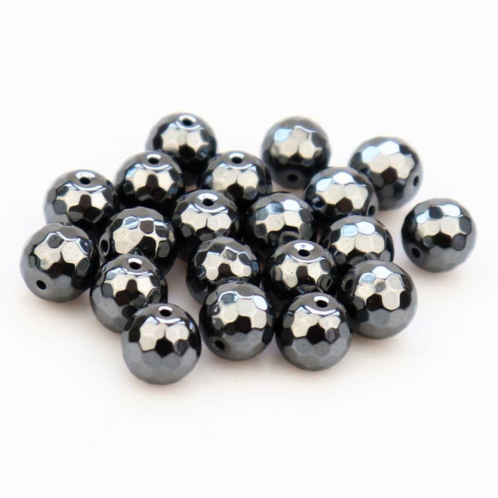 Tromlované korálky jsou vyrobeny ze syntetického nemagnetického minerálu hematit s fasetovým výbrusem.
