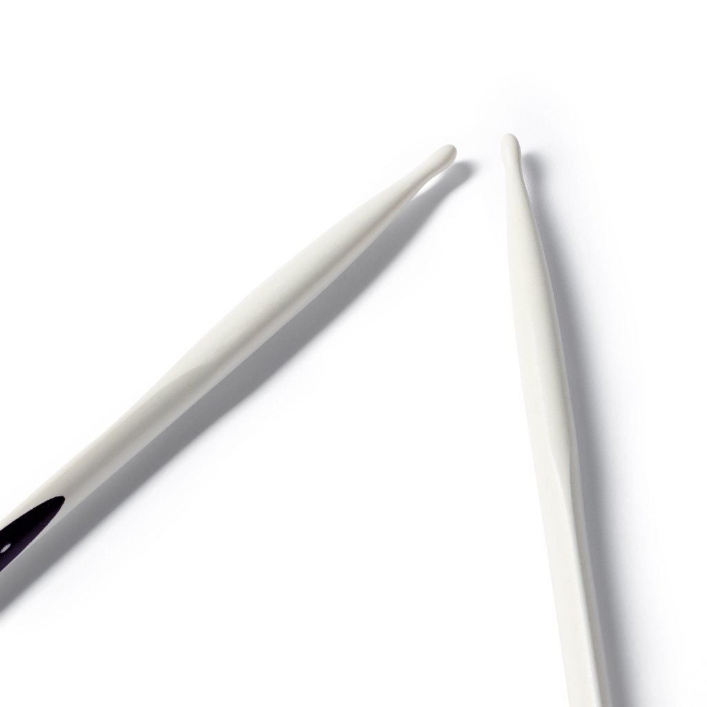 Ponožkové jehlice jsou ergonomické, lehké a tiché. Špička ve tvaru kapky umožňuje jednodušší zachycení příze a hladké vedení jednotlivých ok, což je podpořeno i trojúhelníkovým profilem jehlice.