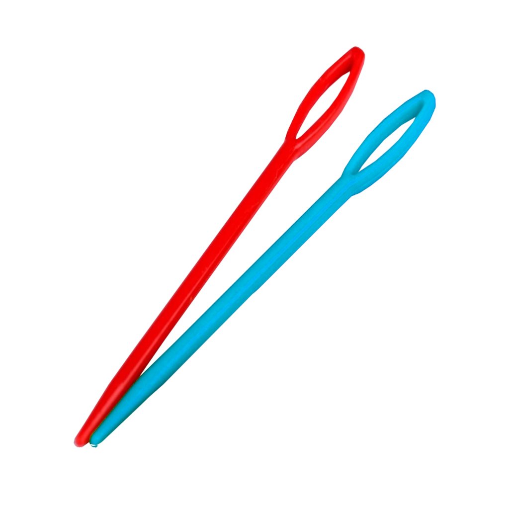 Jehly plastové 9 cm sada 2 ks. Délka: 9 cm. Tloušťka: 3 mm. Rozměry očka: 25 x 6 mm. Plastové jehly jsou díky velkému očku a tupé špičce vhodné na zapošívání příze při pletení nebo na stužkové vyšívání. Jsou ohebné, nelámou se, využijete i pro dětské vyšívání. Očko je dostatečně velké na provlečení stuhy nebo hrubší příze, s níž můžete vyšívat na kanavu.Barevnost fotografií se může lišit v závislosti na typu monitoru.