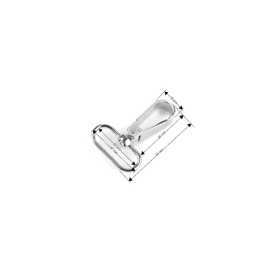 Kovová karabina je otočná. Využijete ji k výrobě klíčenek, vodítek nebo k připevnění popruhů na tašky a kabelky.