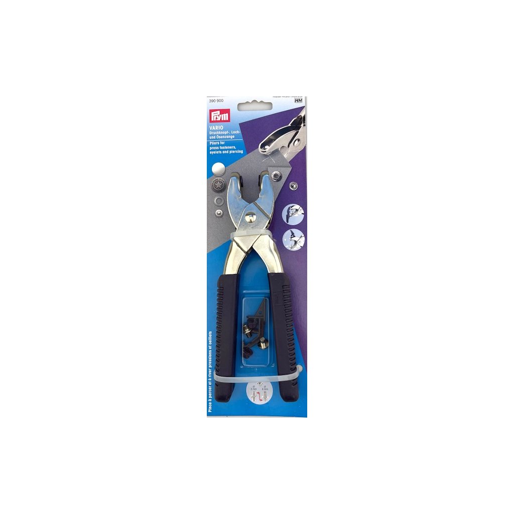 Kleště nýtovací a děrovací Prym VARIO s děrovacím nástrojem pro průměry 3 a 4 mm jsou vhodné pro nýtování patentek (druků), oček, knoflíků a průchodek.