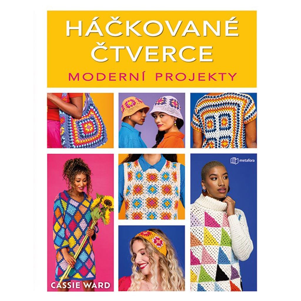 Návod na základní čtverec a jeho úpravy, poloviční, diagonální čtverec, kombinace přízí a barev, spojování a všechny základní techniky, podrobné návody a rozkresy, projekty, které rozzáří váš šatník.