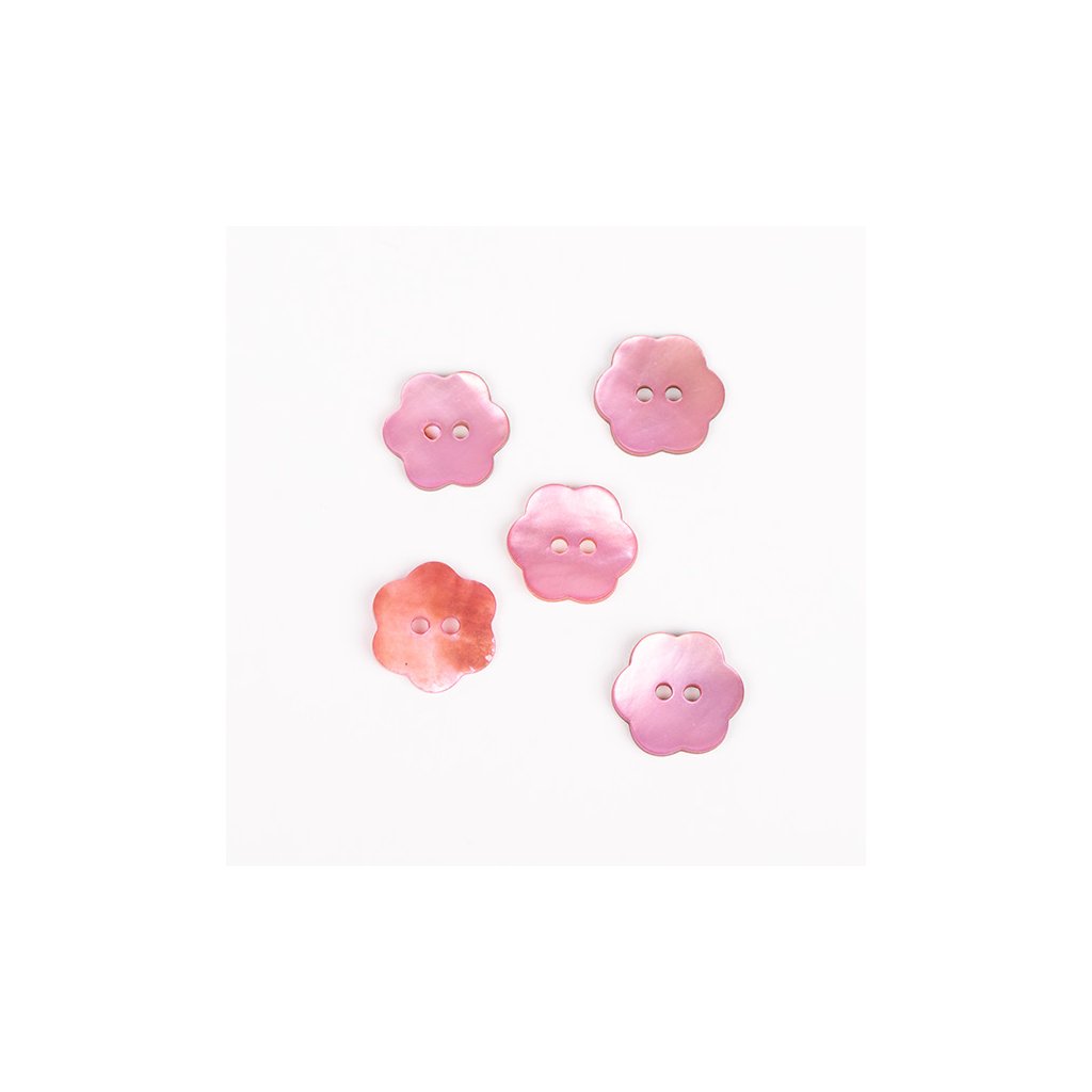 Perleťové knoflíky ve tvaru kytičky jsou vyrobeny ze skořápek mušlí.
