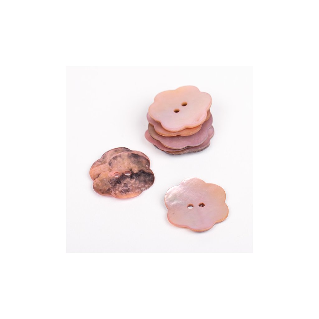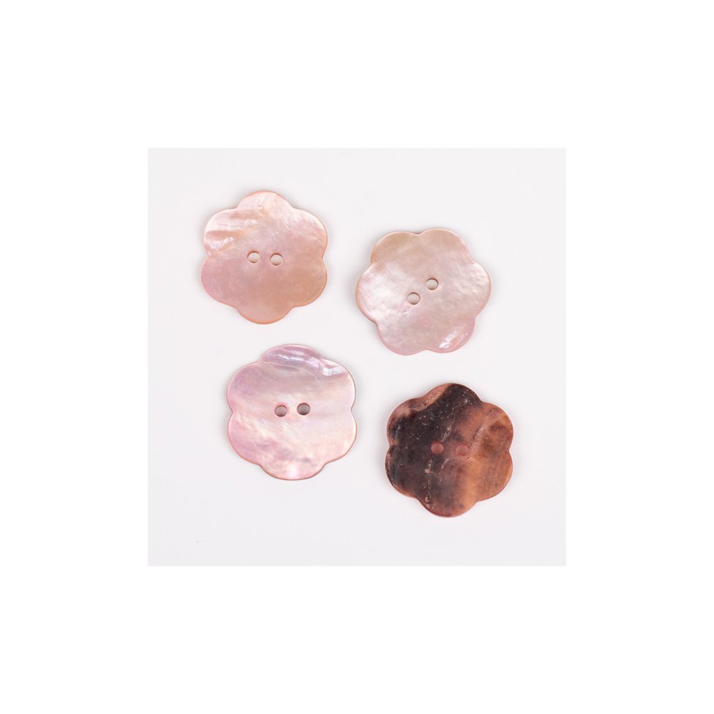 Perleťové knoflíky ve tvaru kytičky jsou vyrobeny ze skořápek mušlí.