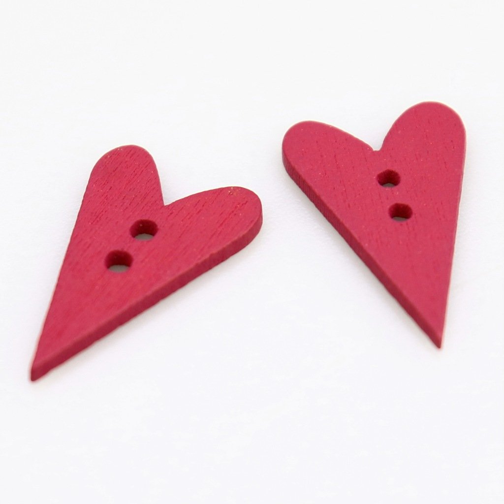 Knoflík srdce, dřevěný 25x15 mm fuchsiový.