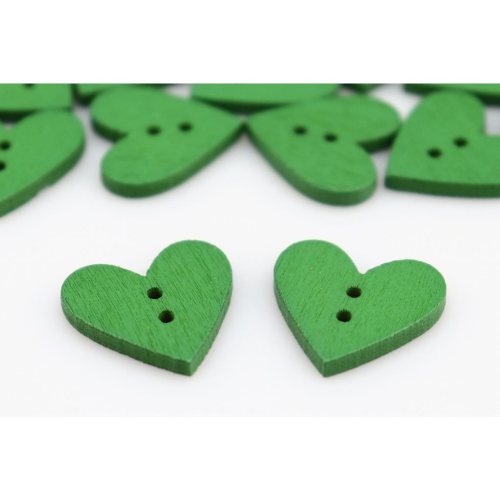 Knoflík srdíčko, dřevěný 20 x 15 mm zelený