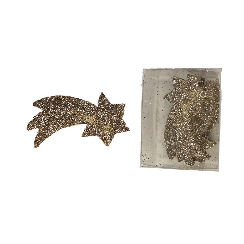 Dřevěné komety ve zlaté barvě se třpytkami využijete jako dekoraci na vánoční stromeček nebo k dozdobení věnců, svícnů, girland aj.