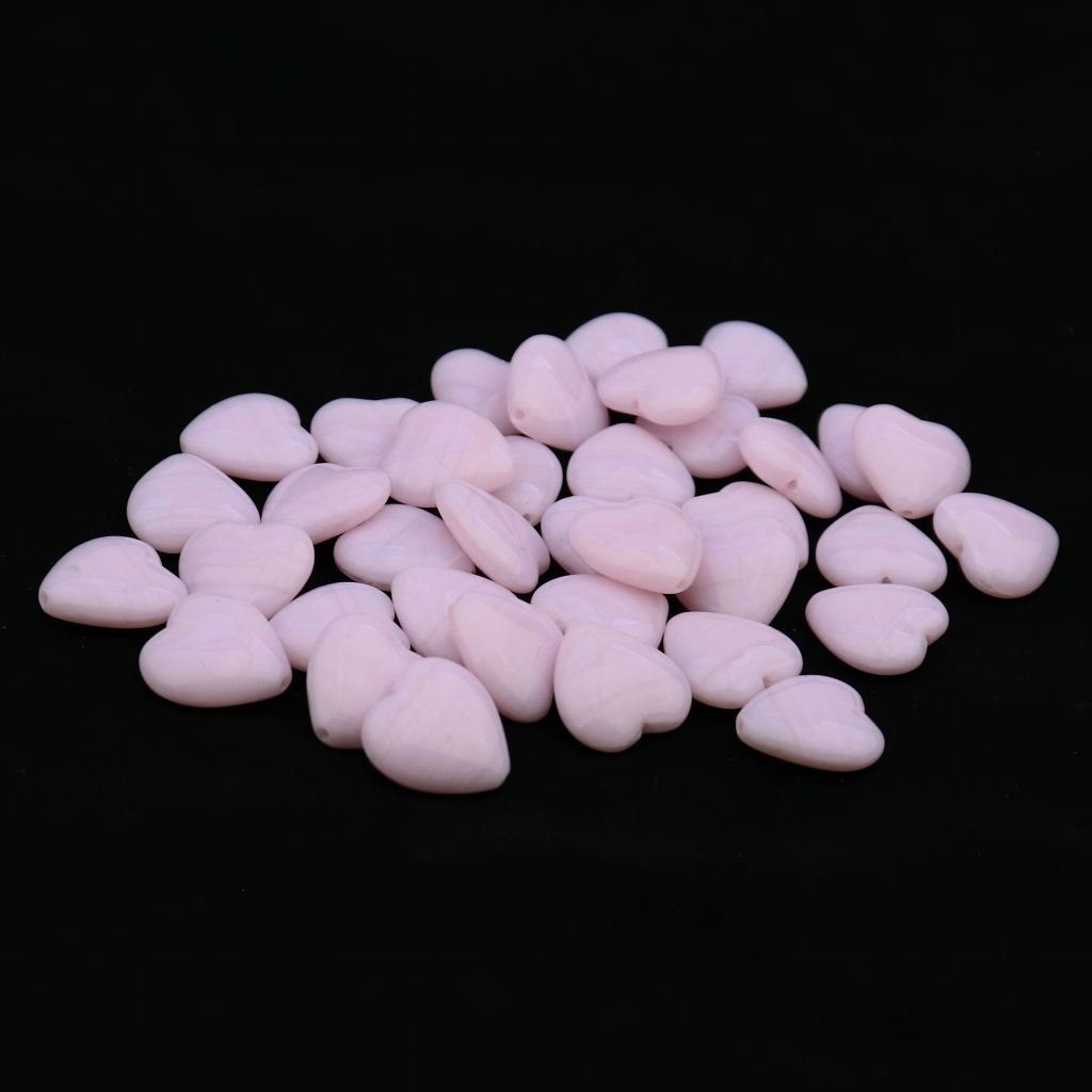 Srdce mohou obsahovat odšťěpy a nedokonale zbroušené hrany. Korálky se mohou lišit - každý je jiný. Korálky mají pastelově růžovou barvu a drobné žíhání.