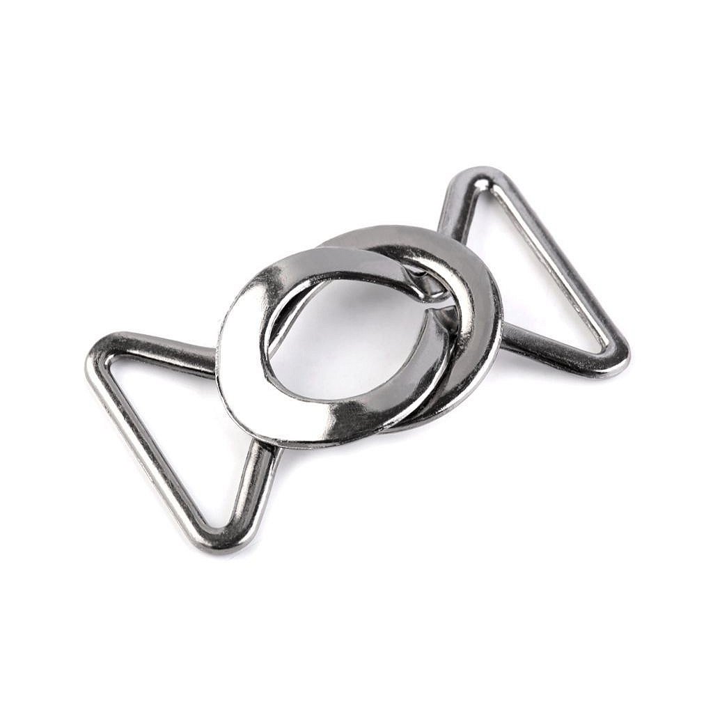 Kovové zapínání obsahuje dvě části, které do sebe zaháknete.