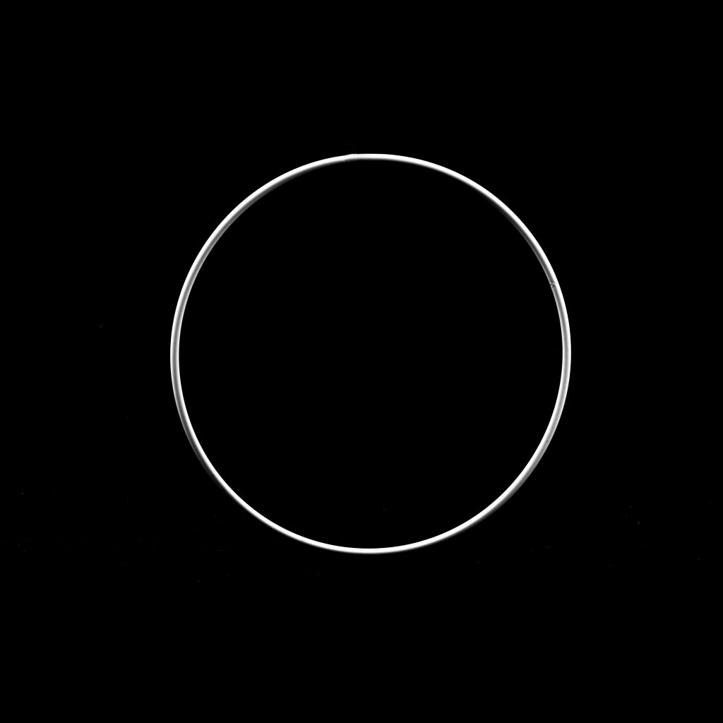 Kovový kruh - lapač snů o průměru 15 cm je lakovaný bílou barvou a je vhodný na výrobu bytových dekorací jako jsou lapače snů, macramé, zvonkohry, drhané obrázky a jiné.
