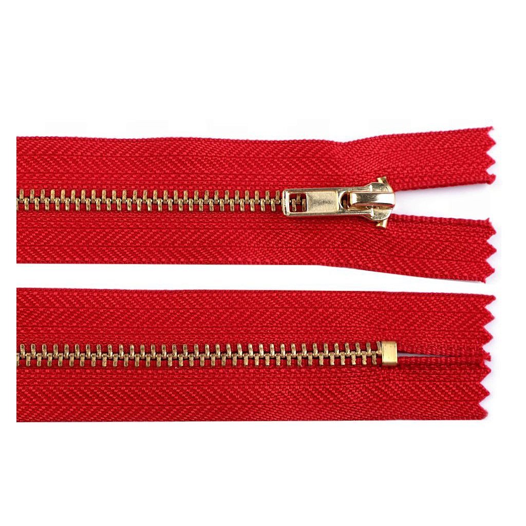 Kovový mosazný zip nedělitelný 16 cm červený