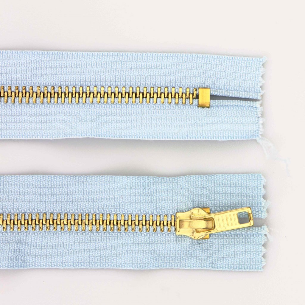 Kovový zip nedělitelný 12 cm světle modrý.