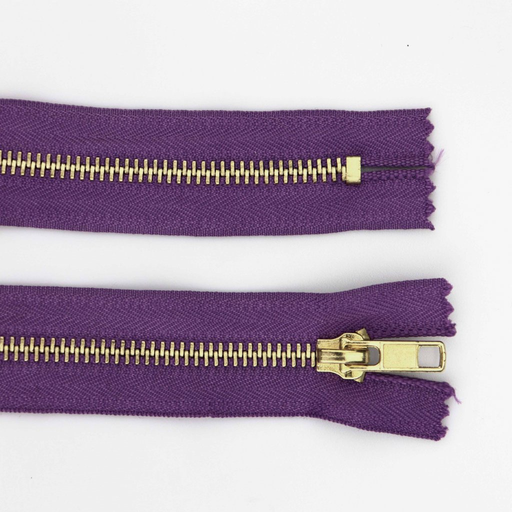 Kovový zip nedělitelný 16 cm fialový.