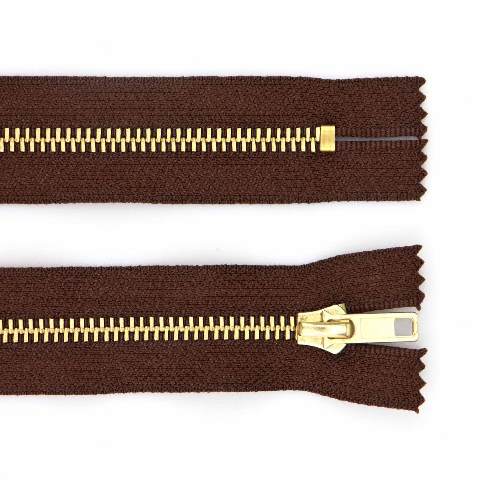 Kovový zip nedělitelný 16 cm tmavě hnědý.