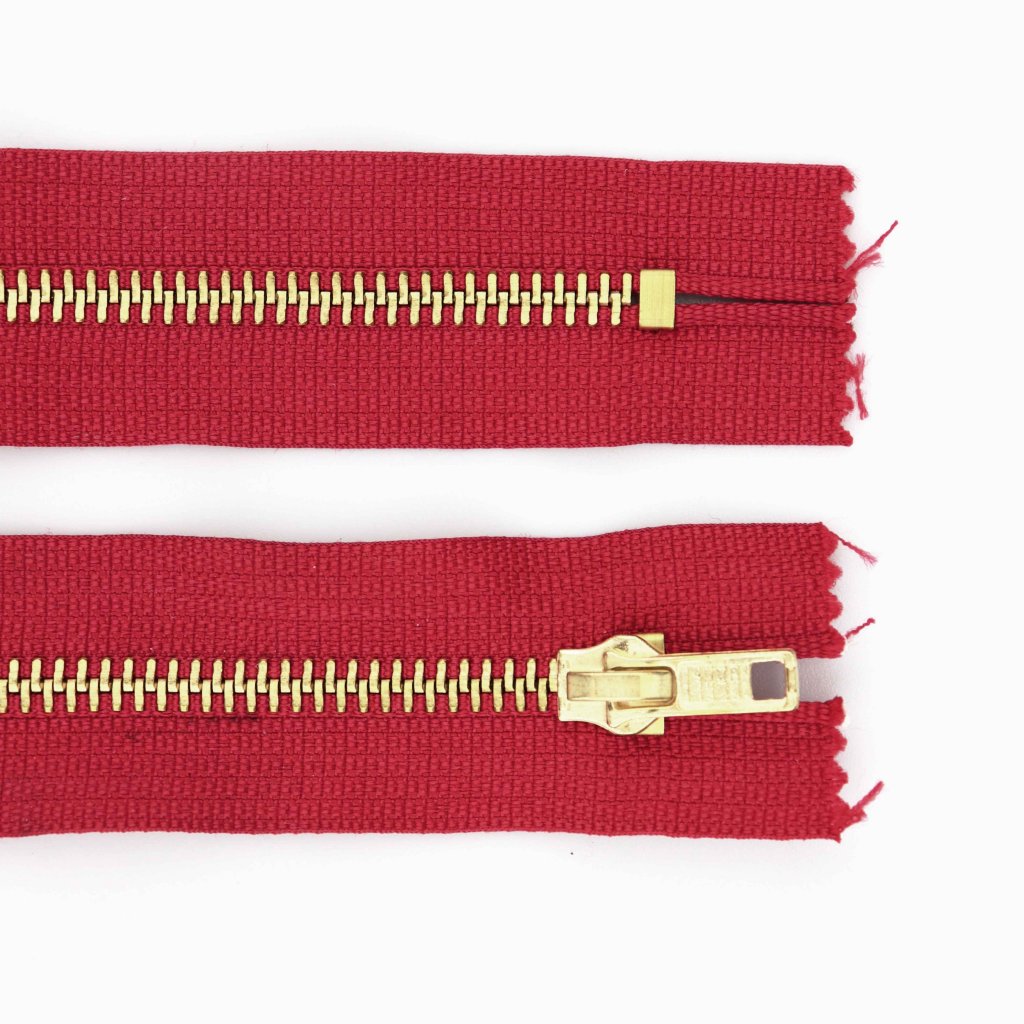 Kovový mosazný zip je pevný a vyroben z kvalitního materiálu.