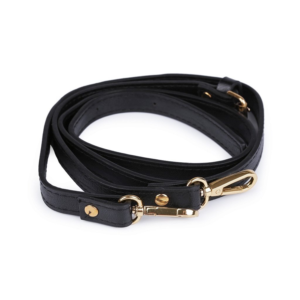 Koženkový popruh na kabelku 110,5 - 126 cm černý se zlatou karabinkou.