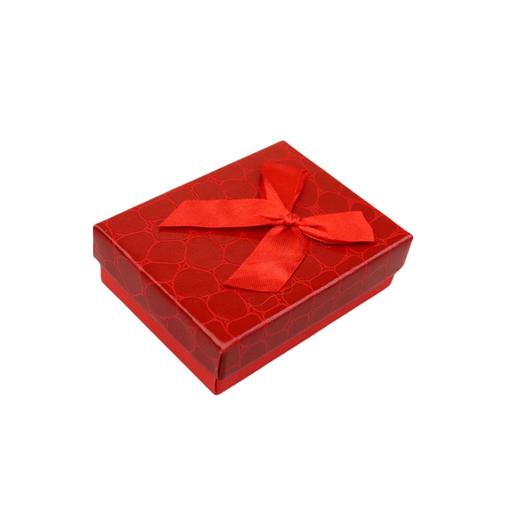 Krásná dárková papírová krabička se saténovou mašličkou je vhodná zejména k zabalení šperků a bižuterie. Uvnitř je vyjímatelná molitanová výplň s průřezem na prsten a náušnice, ale využijete ji i na náramky, řetízky a drobné šperky.