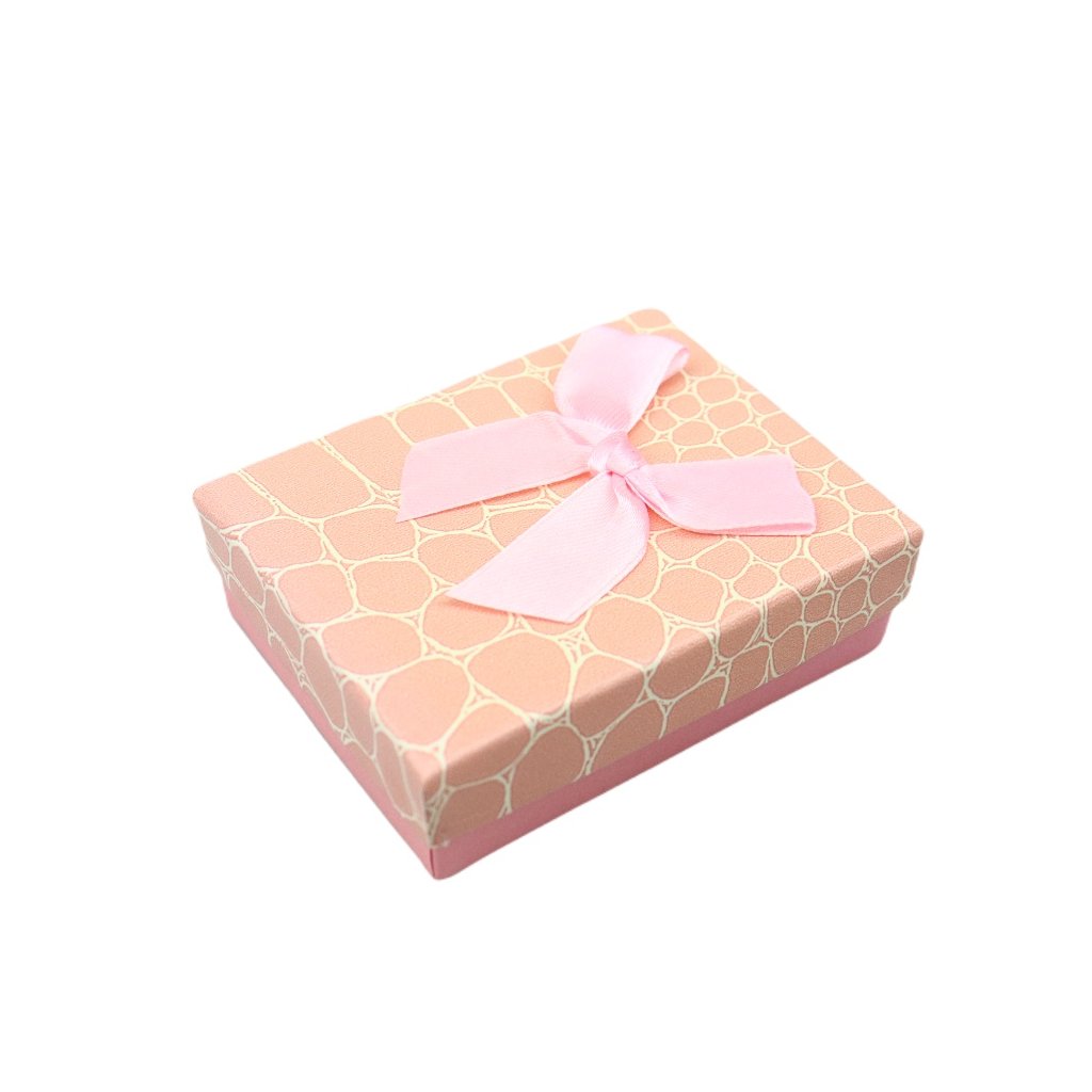 Krásná dárková papírová krabička se saténovou mašličkou je vhodná zejména k zabalení šperků a bižuterie. Uvnitř je vyjímatelná molitanová výplň s průřezem na prsten a náušnice, ale využijete ji i na náramky, řetízky a drobné šperky.