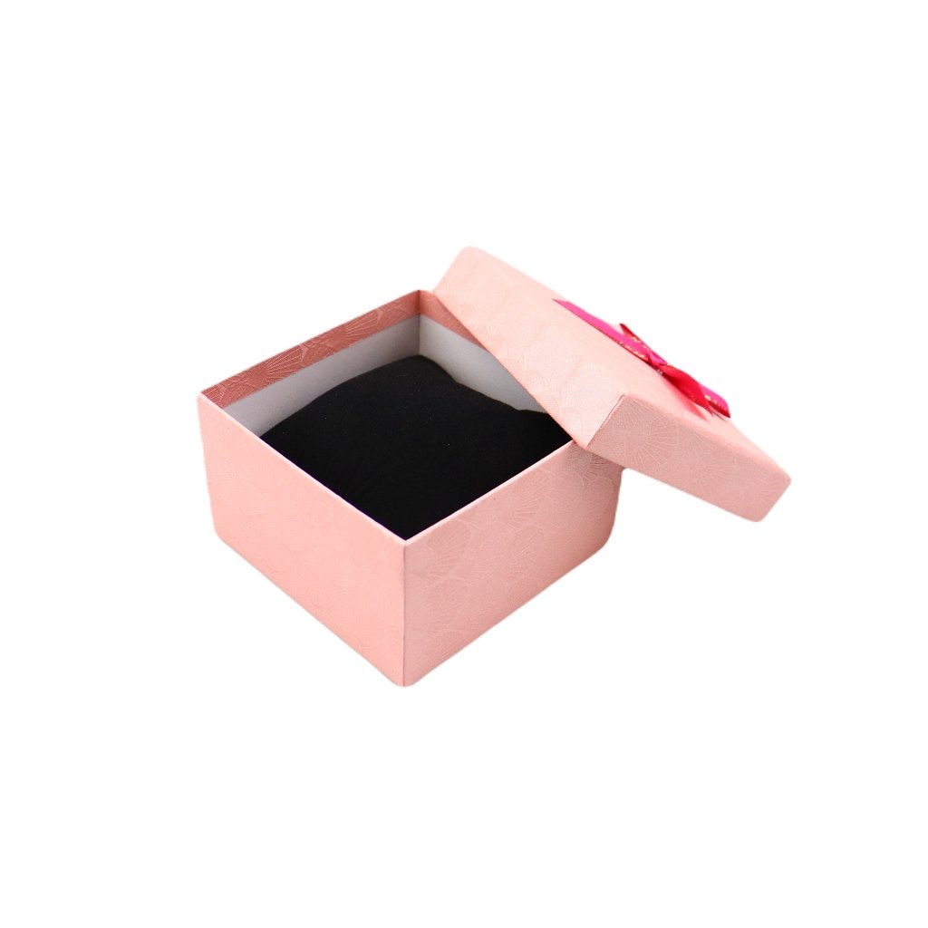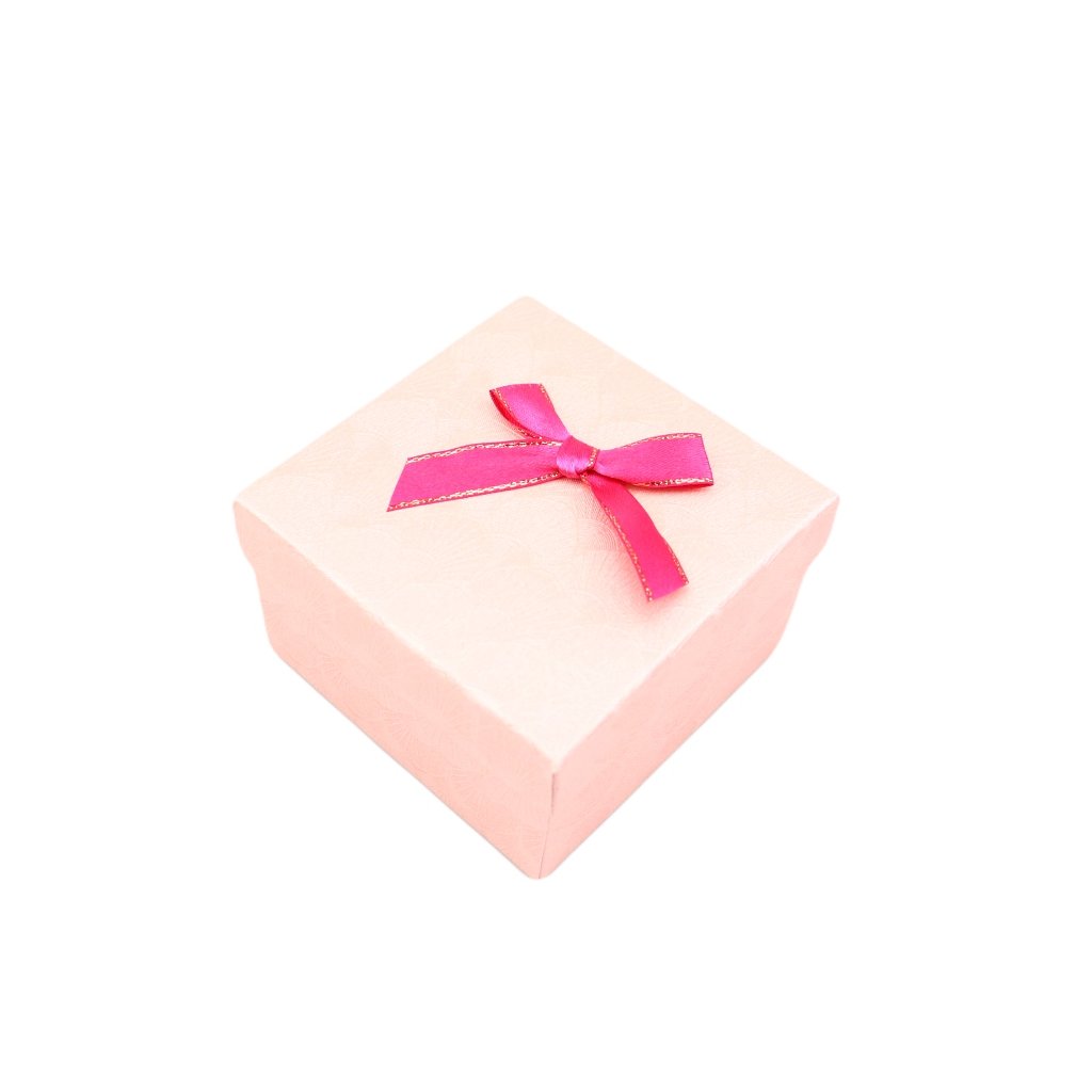 Krásná dárková papírová krabička se saténovou mašličkou je vhodná zejména k zabalení šperků a bižuterie. Uvnitř je vyjímatelný semišový polštářek, který je vyplněný dutým vláknem. Využijete ho zejména na náramky, řetízky a drobné šperky.