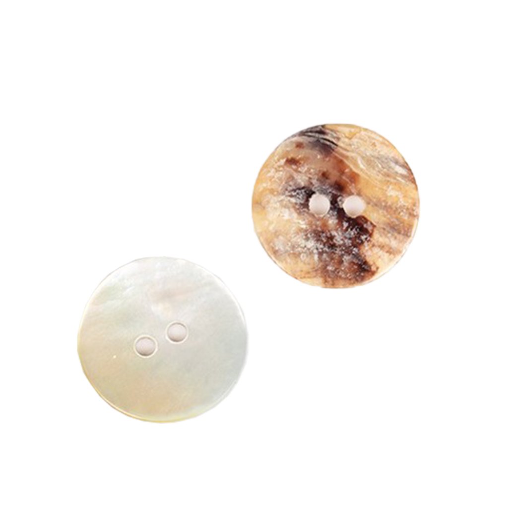 Bílé kulaté knoflíky vyrobené ze skořápek mušlí.