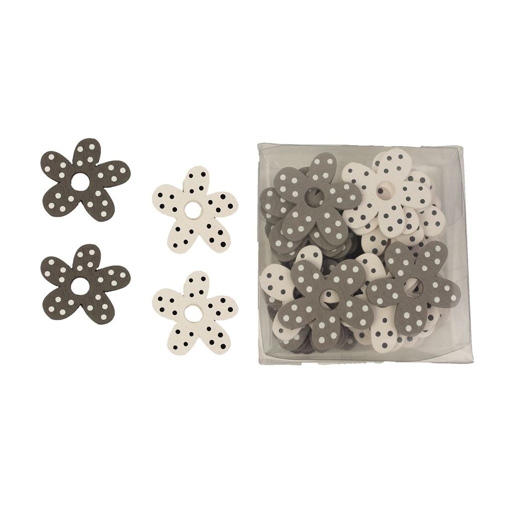 Kytky šedobílé dekorační, 48 ks