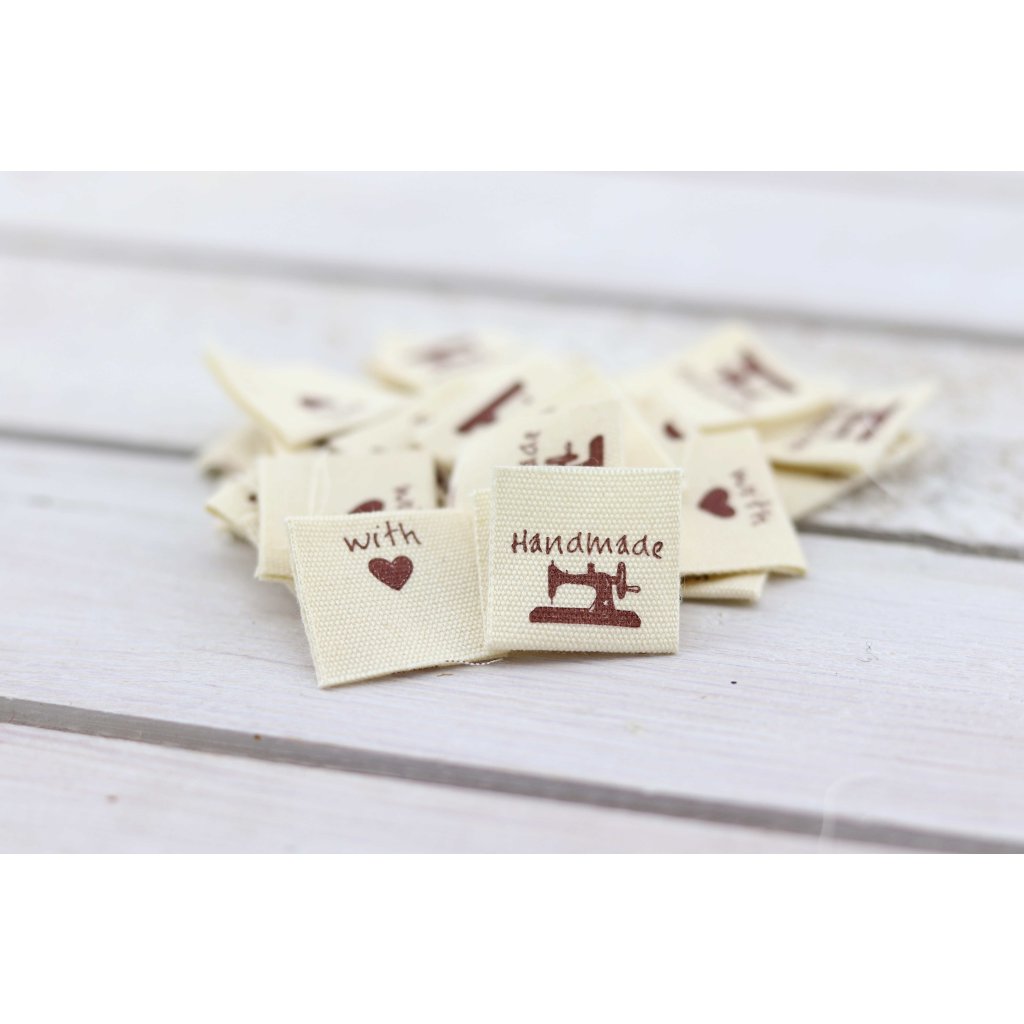 Látková cedulka Handmade se šicím strojem je vhodná k označení a ozdobení Vašich výrobků jako jsou kabelky, tašky, košíčky a další.