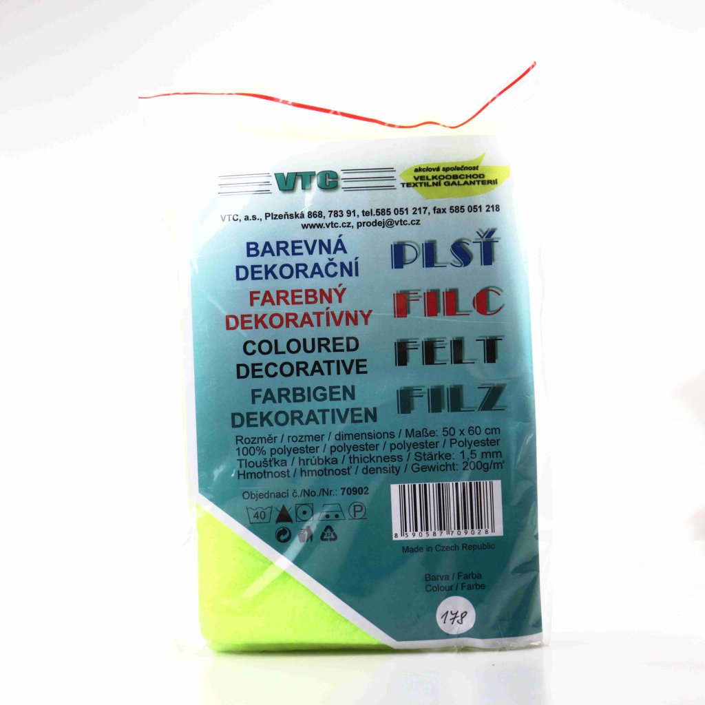Látková dekorativní plsť 50 x 60 cm neon žlutá.