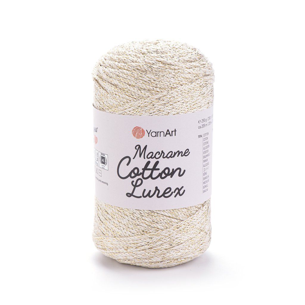 Macrame Cotton Lurex je splétaná šňůrková (provázková) příze se třpytivou nitkou.