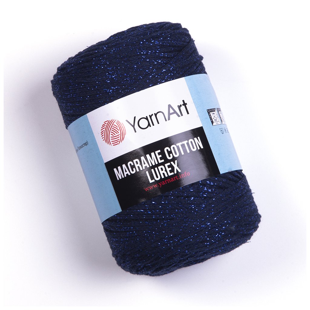 Macrame Cotton Lurex 740 tmavě modrá s modrou nitkou.