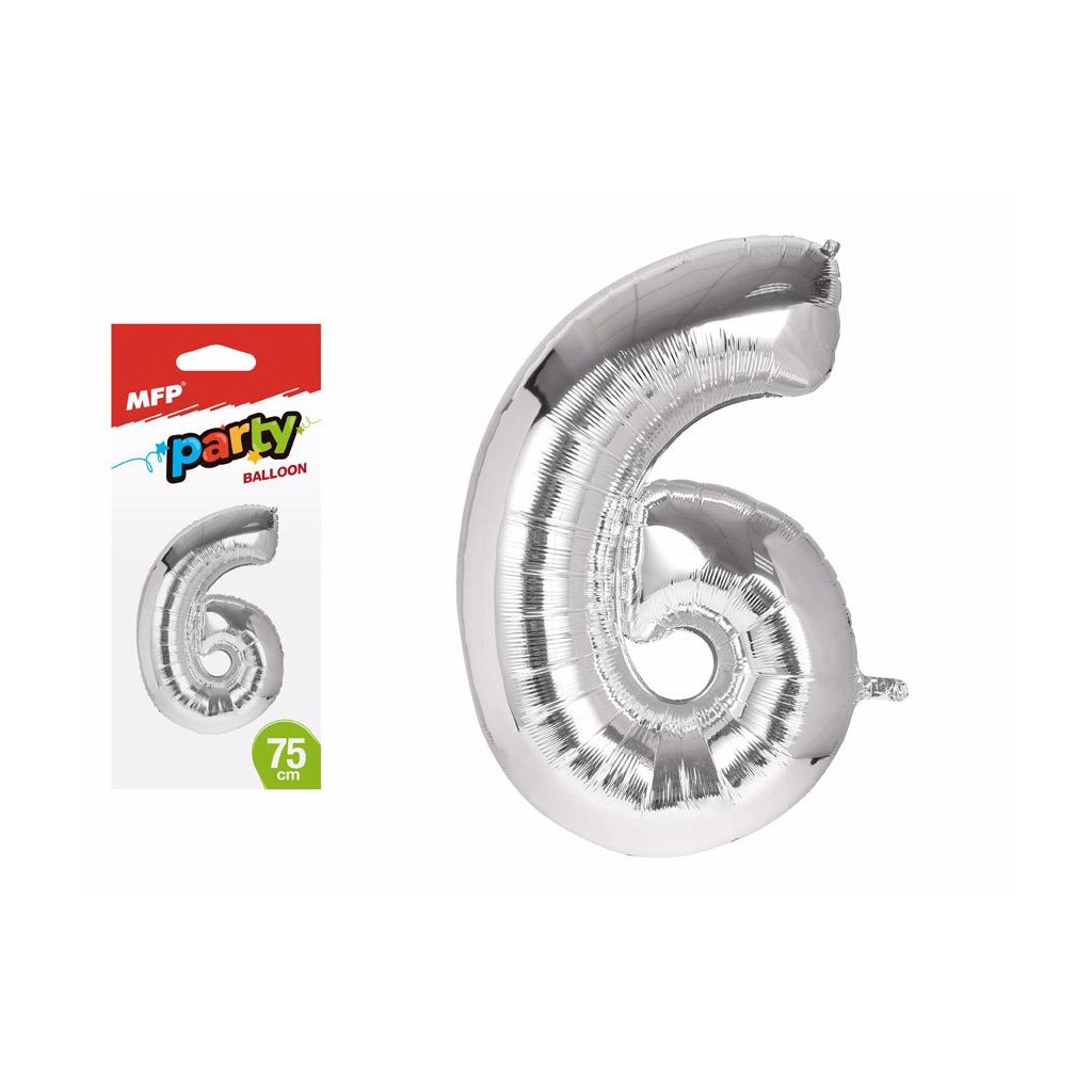 Fóliový nafukovací balónek č. 6 - 75 cm, stříbrný.