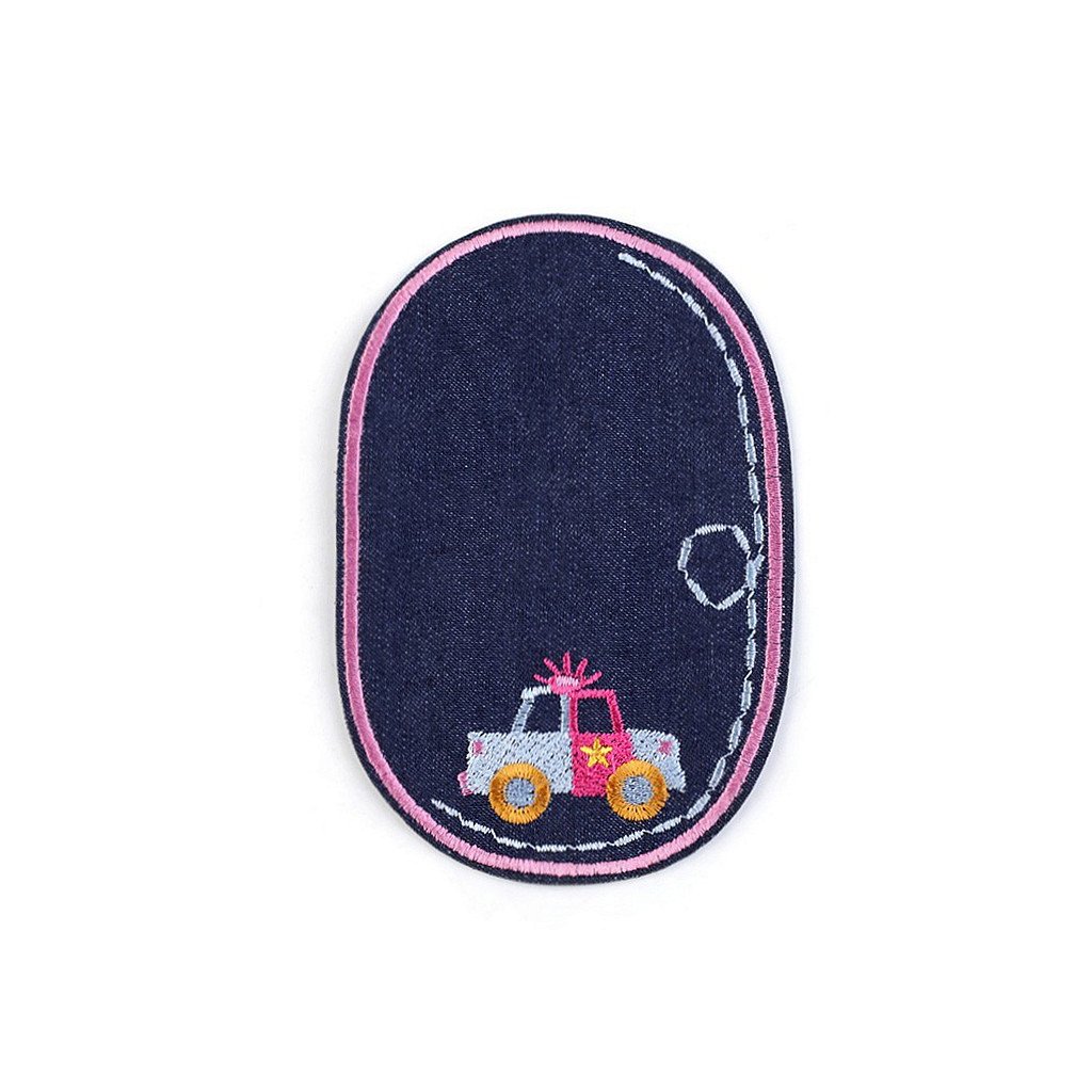 Nažehlovací záplata oválná 7,5 x 11,5 cm auto s růžovým obšitím