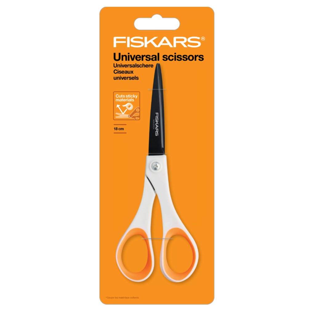 - Univerzální nůžky Fiskars Non-Stick™ jsou ideální pro střihání lepivých materiálů.