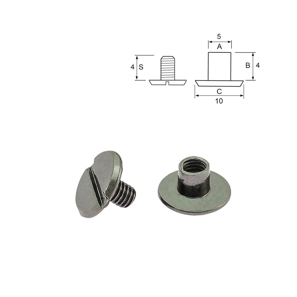 Kovový opaskový šroub s povrchovou úpravou černý nikl se skládá ze dvou částí. Dutý šroub s vnitřním závitem a plnou hlavičkou, který slouží jako uzavřená matice. Protikus šroub pro dotažení spoje. Výhodou šroubovacího spoje je rychlá a snadná manipulace například při výměně opaskové přezky nebo ke spojení dvou materiálů.