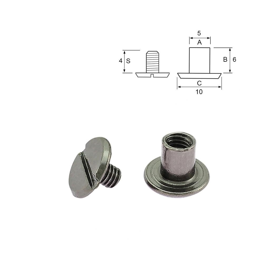 Kovový opaskový šroub s povrchovou úpravou černý nikl se skládá ze dvou částí. Dutý šroub s vnitřním závitem a plnou hlavičkou, který slouží jako uzavřená matice. Protikus šroub pro dotažení spoje. Výhodou šroubovacího spoje je rychlá a snadná manipulace například při výměně opaskové přezky nebo ke spojení dvou materiálů.