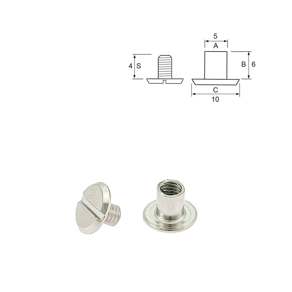 Kovový opaskový šroub s povrchovou úpravou stříbro se skládá ze dvou částí. Dutý šroub s vnitřním závitem a plnou hlavičkou, který slouží jako uzavřená matice. Protikus šroub pro dotažení spoje. Výhodou šroubovacího spoje je rychlá a snadná manipulace například při výměně opaskové přezky nebo ke spojení dvou materiálů.