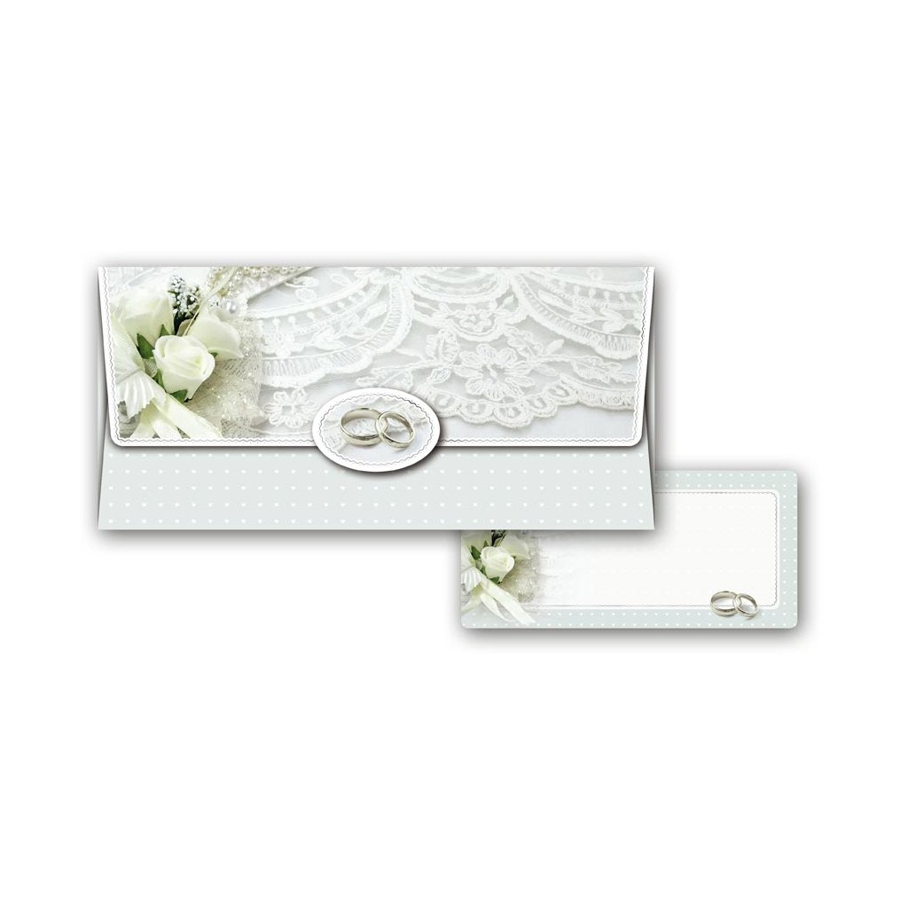Dárková obálka na peníze pro novomanžele. Udělejte novomanželům radost a věnujte jim obálku s penězi nebo dárkovým poukazem. Uvnitř je kartička bez textu, na kterou můžete napsat věnování.