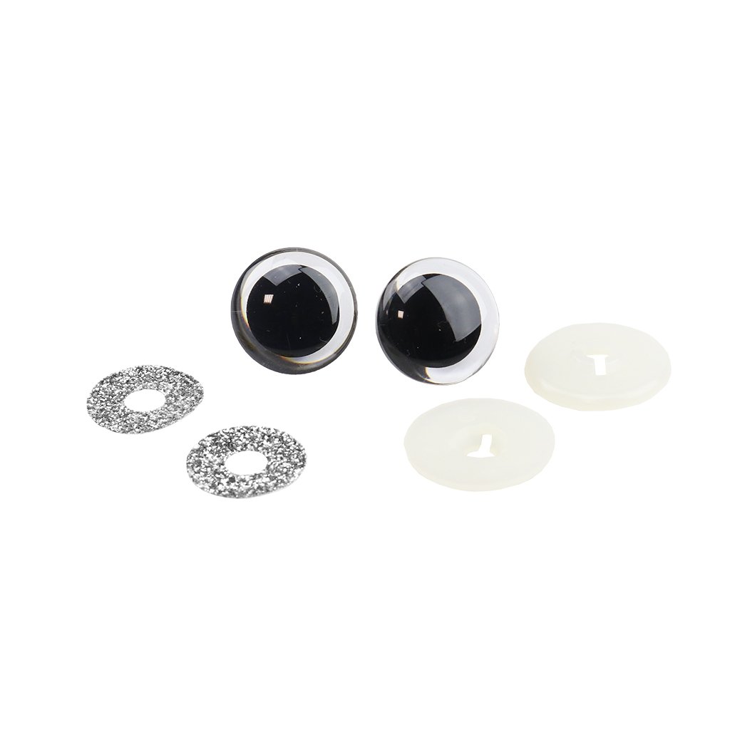 Z jedné strany polokulaté třpytivé očičko se závitem, z druhé strany se nacvakne pojistka, která oko bezpečně připevní na místo.