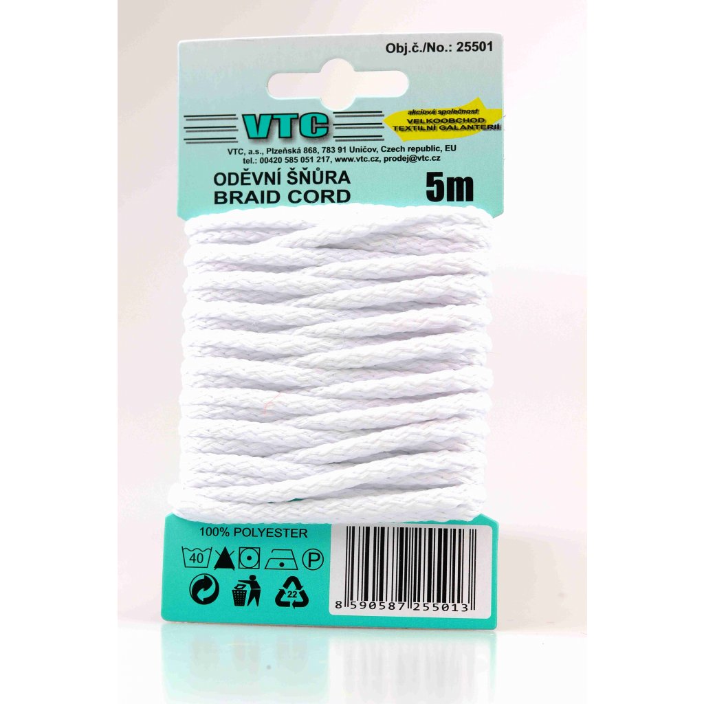 Oděvní šňůra 5 m na kartě - 01 bílá