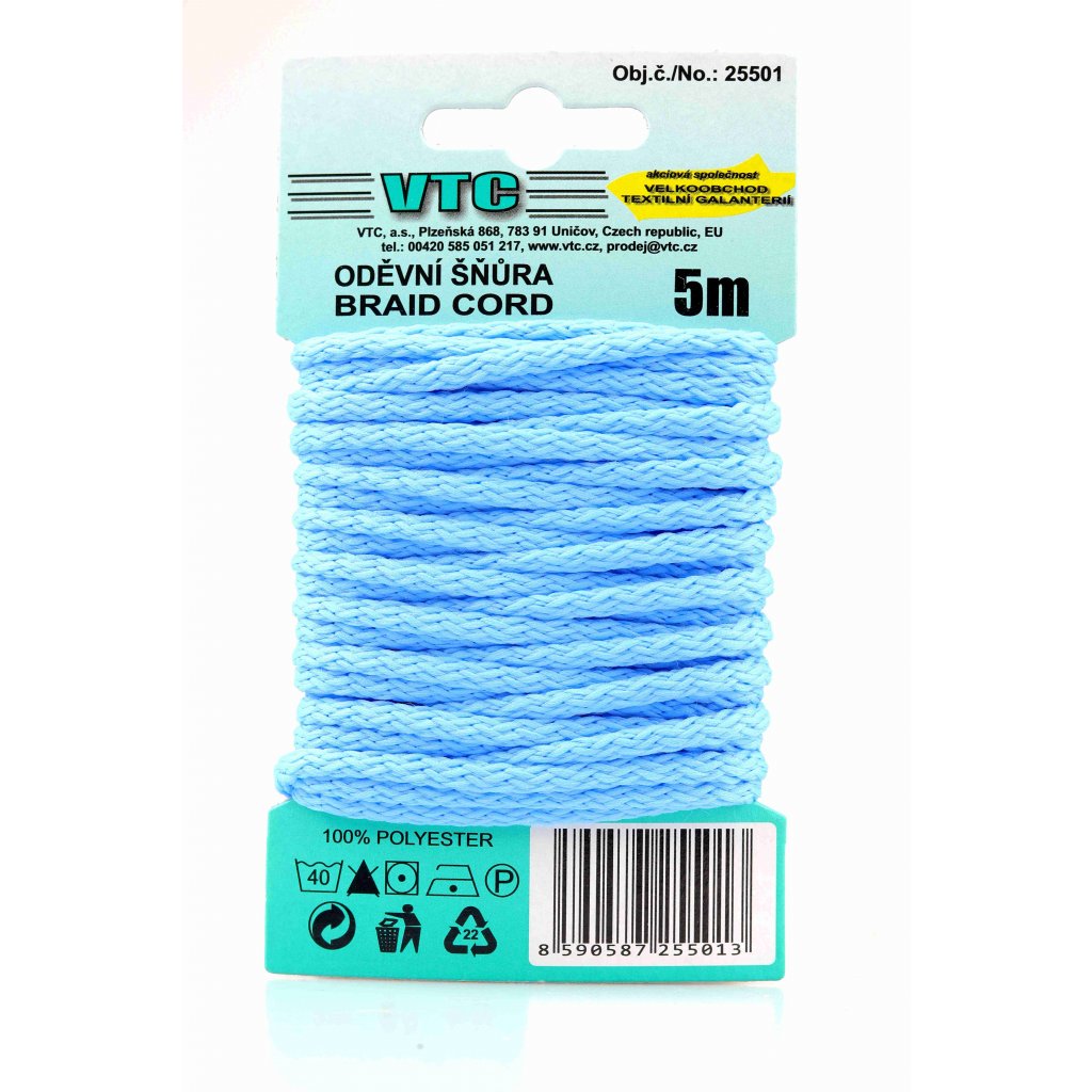 Oděvní šňůra 5 m na kartě - 27 světle modrá